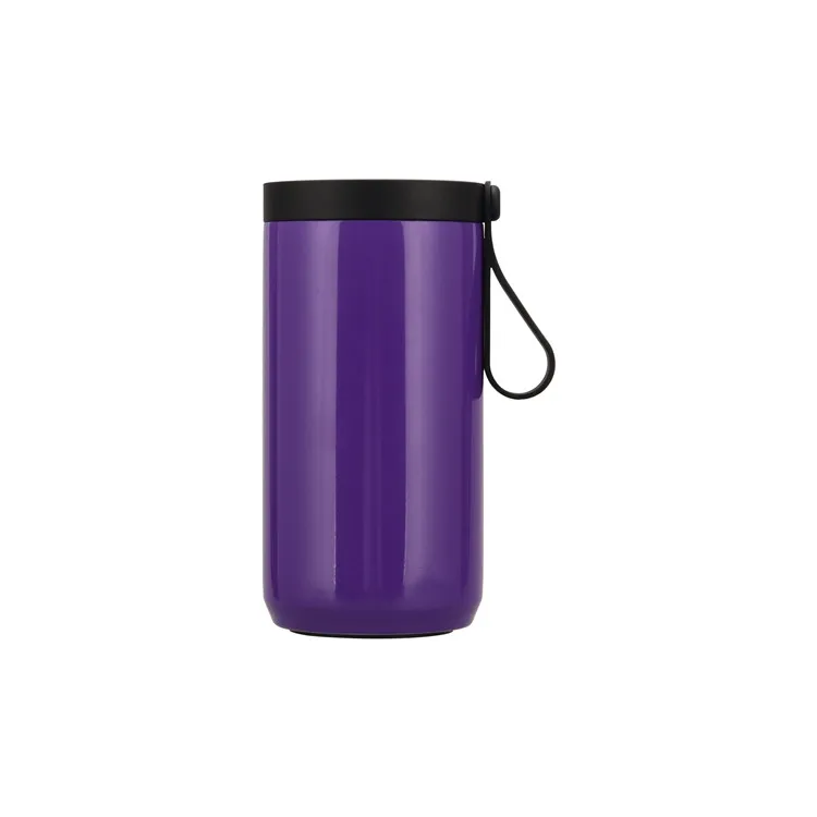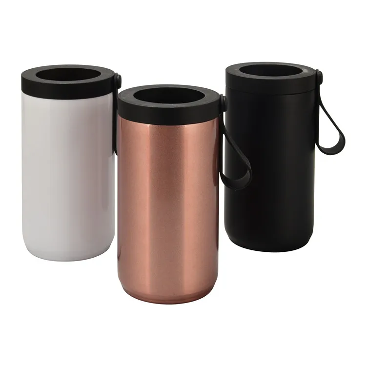 4 in 1 Stainless Steel Black 12 oz 304 Metal Double Walled Insulated Slim Skinny Can Cooler Tumbler With Silicone Handle